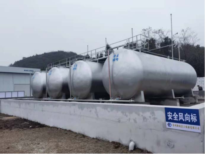 贵州黔域岩上能源有限公司位于贵州省盘州市胜境街道,该公司于2021年04月20日经盘州市应急管理局核准选址胜境街道岩上居委会(岩上村)建设“贵州黔域岩上能源有限公司甲醇储配经营站项目”,用于甲醇燃油的储存、灌装,甲醇燃油作为民用燃料供各大餐饮企业、学校食堂。项目设置卧式单层甲醇燃油储罐4个(单罐容积60m³),燃油储罐总容积为240m3,根据《石油库设计规范》第3.0.1条规定,该甲醇储配站划分为五级石油库,储存经营的甲醇划分为甲B类易燃液体。 |