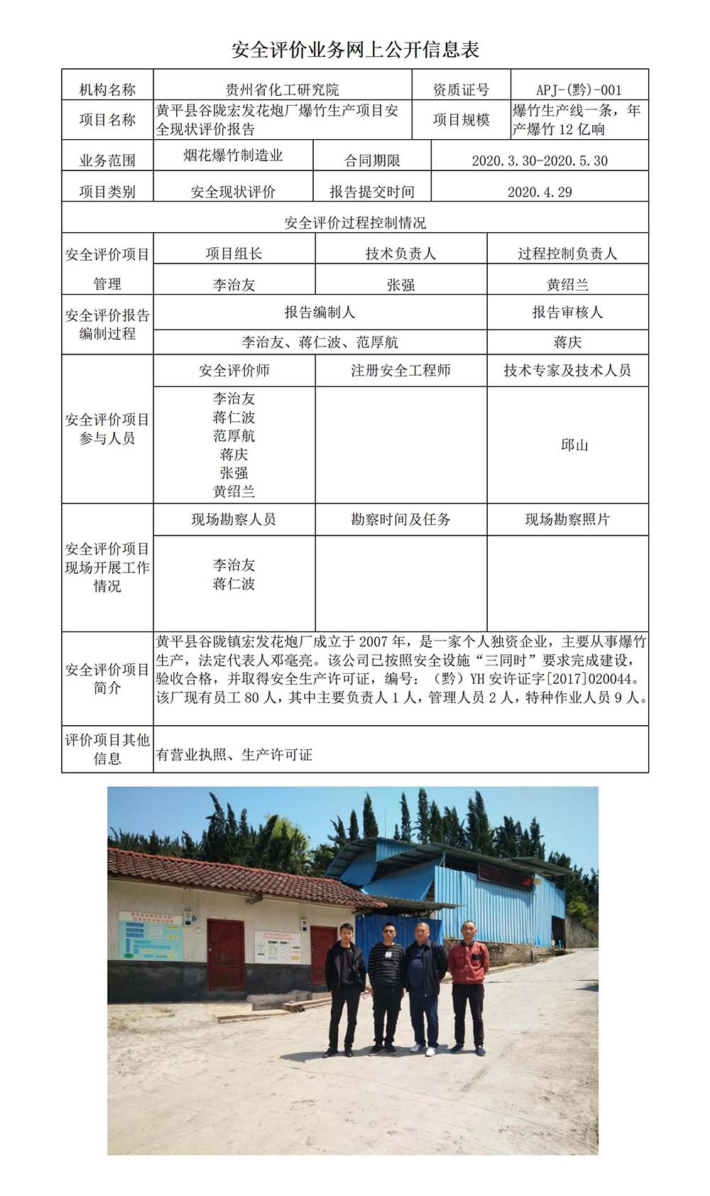 黄平县谷陇宏发花炮厂爆竹生产项目安全现状评价报告