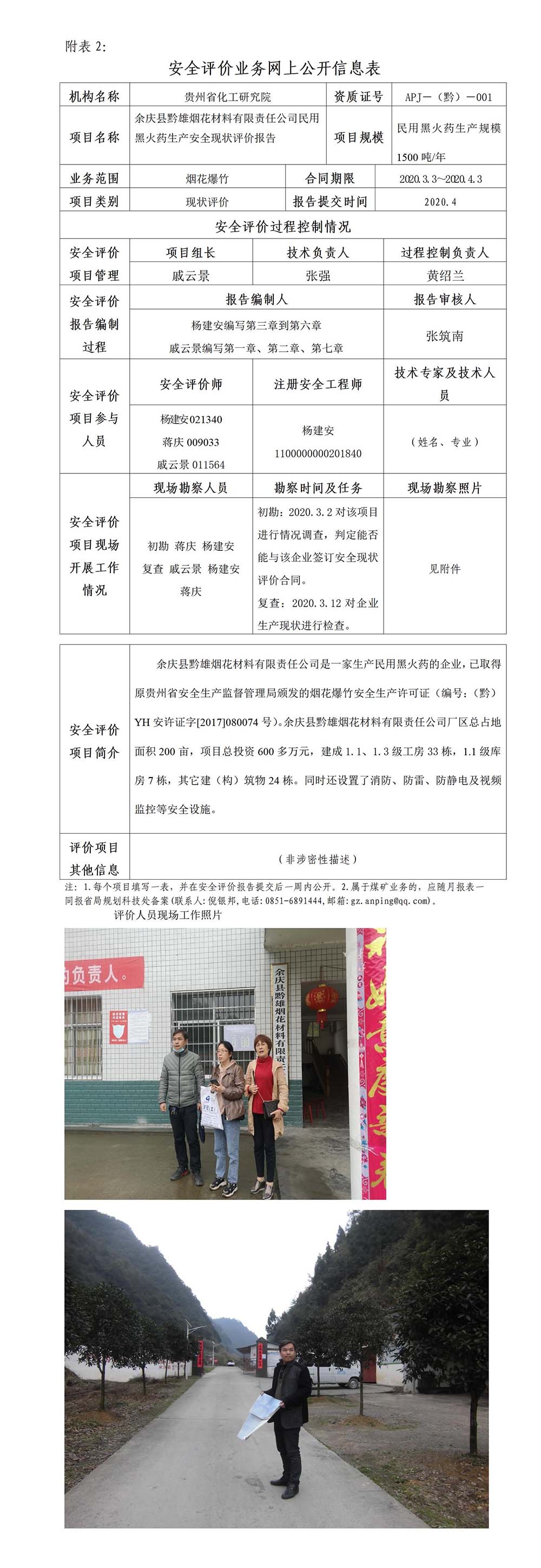 余庆县黔雄烟花材料有限责任公司民用黑火药生产安全现状评价报告