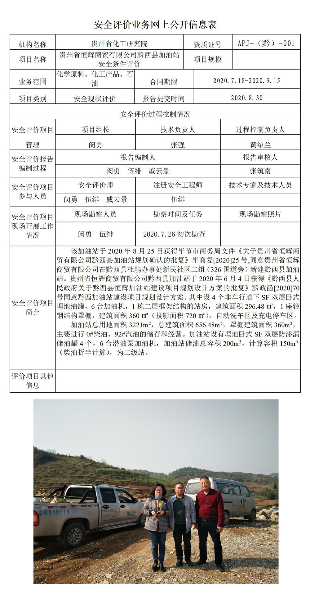 贵州省恒辉商贸有限公司黔西县加油站安全条件评价