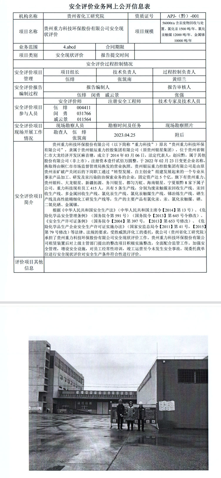 贵州重力科技环保股份有限公司安全现状评价
