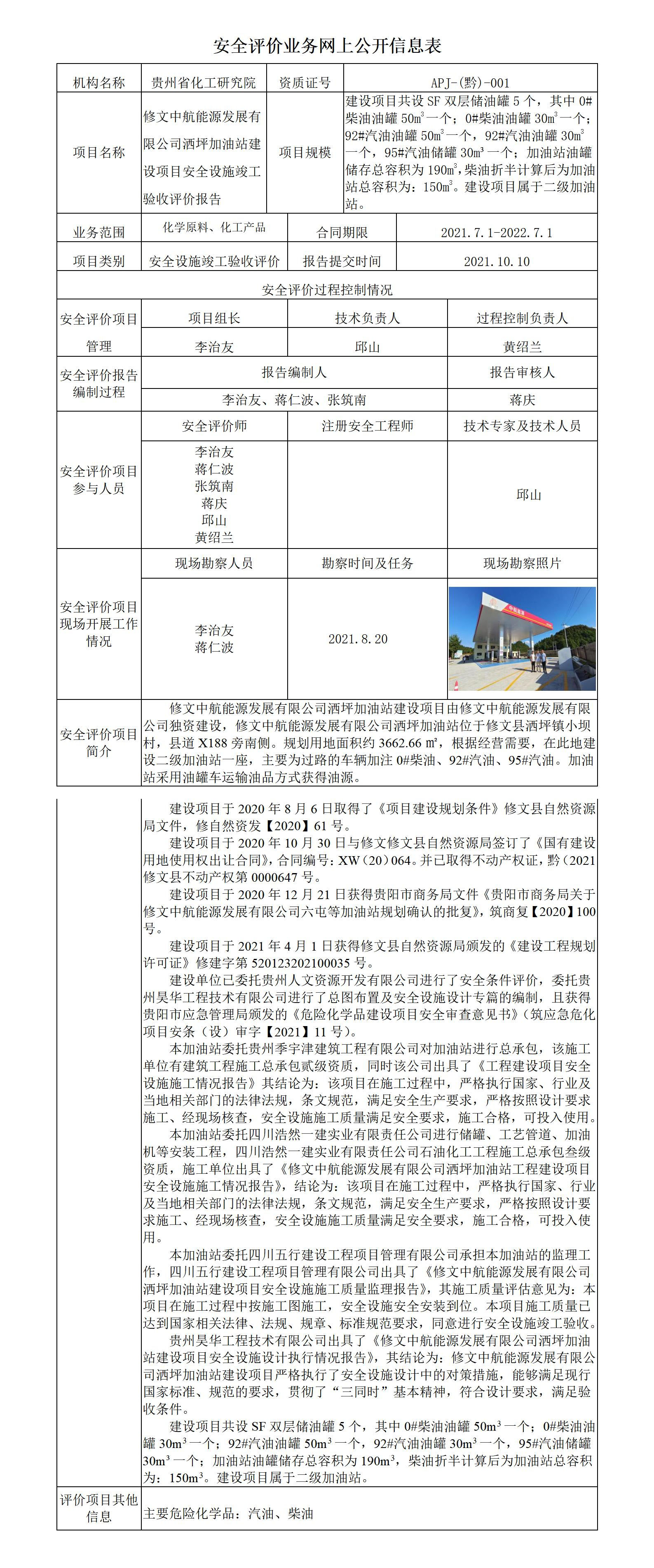 修文中航能源发展有限公司洒坪加油站建设项目安全设施竣工验收评价报告
