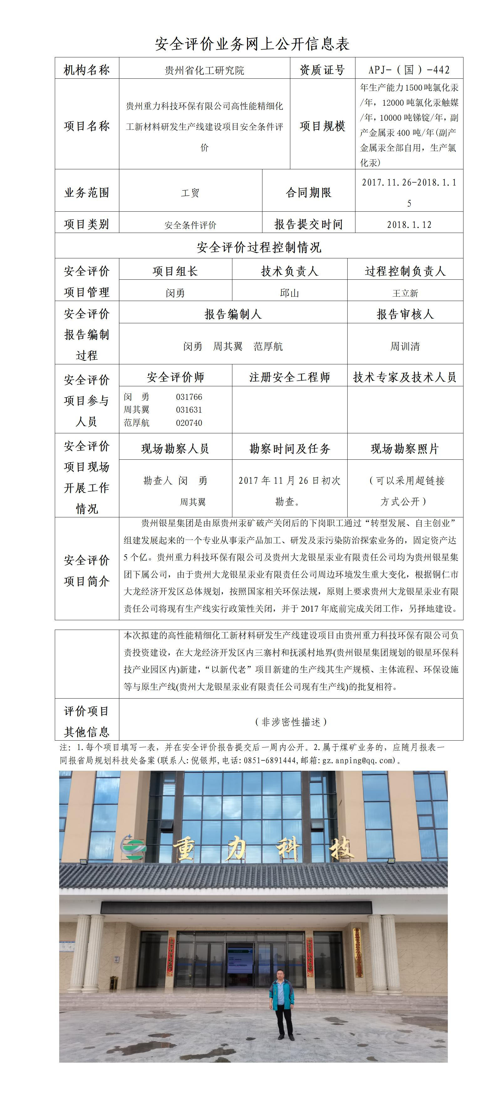 贵州重力科技环保有限公司高性能精细化工新材料研发生产线建设项目安全条件评价